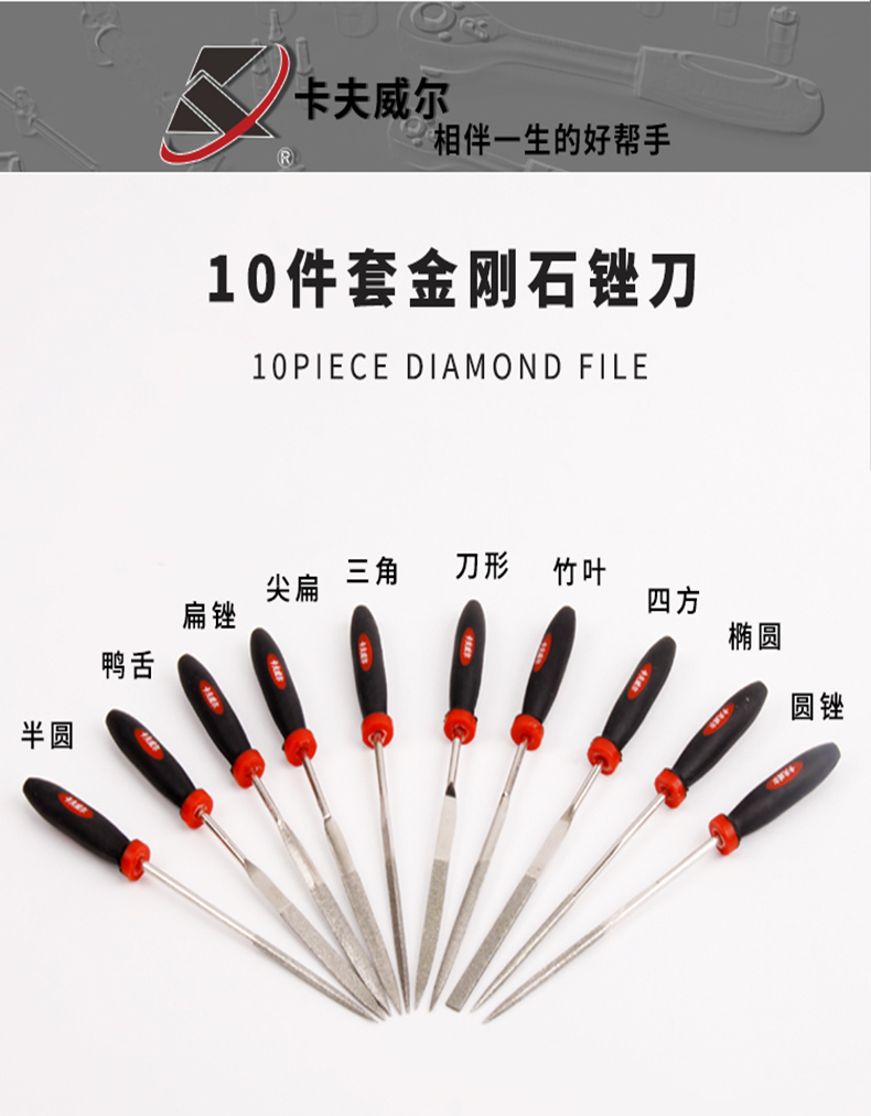金刚石锉刀5件套锉刀组扁锉圆锉半圆锉方锉三角锉金刚砂 -