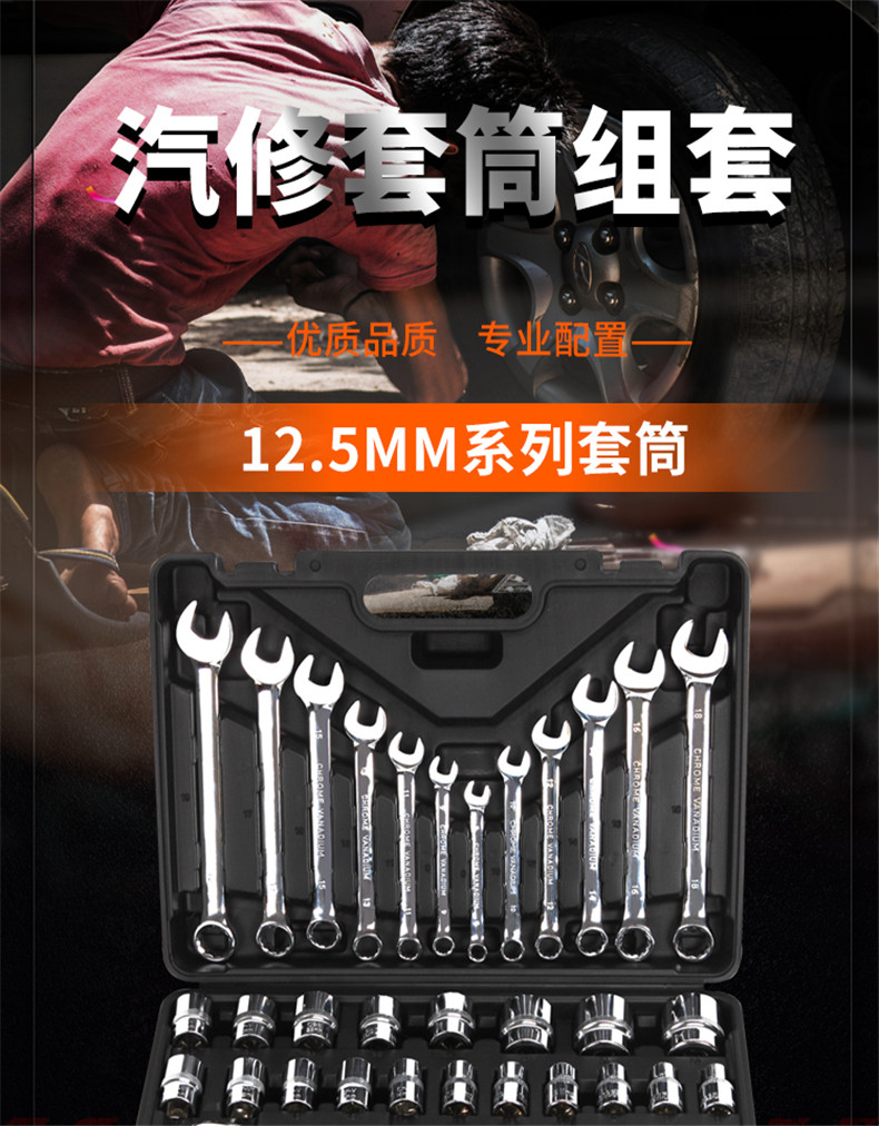 汽修套装汽修工具箱棘轮扳手套装套筒套管组合万能修车箱SS3222A -